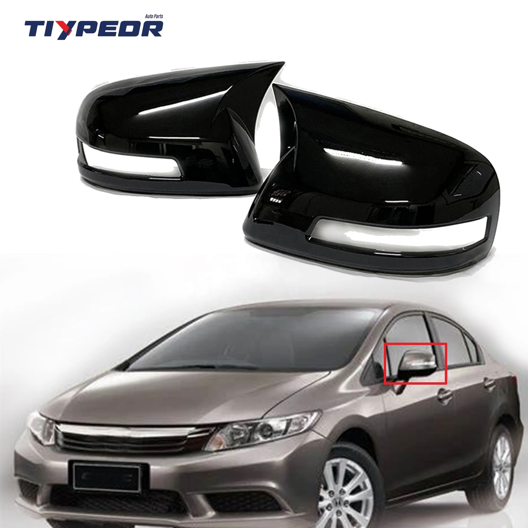 ABS Stick on Gloss Black Look Rear View Mirror Covers With Light Gap for Honda CIVIC 9th 2012 - 2015 2013 2014 Auto Body Kits