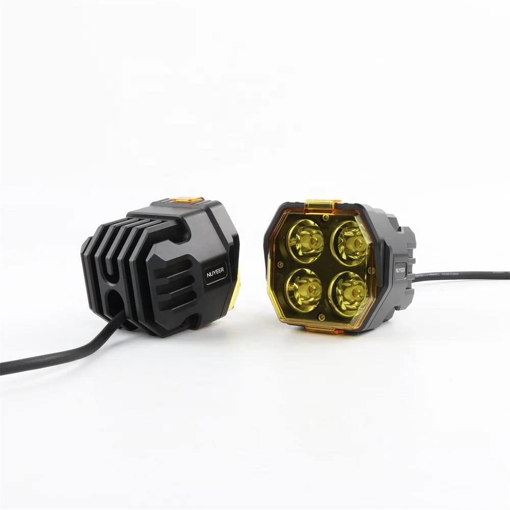 TIYPEOR 40W Yellow Motorcycle Pickup Driving Lights Super Bright Spotlight Work Light Bar Square Headlight for Off-road Fog Lamp