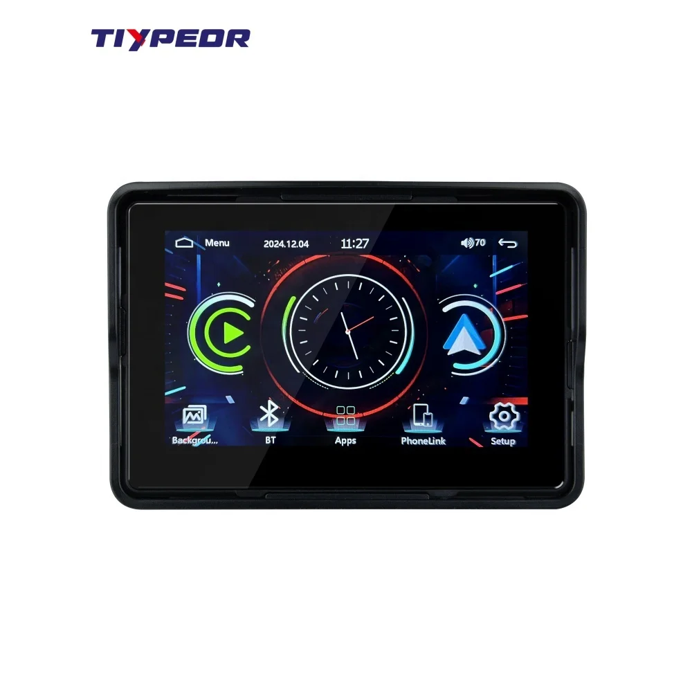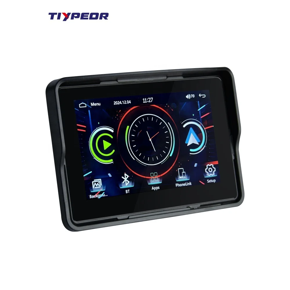 TIYPEOR 5 Inch Moto Touch Screen Portable Motorcycle Monitor Support Wireless CarPlay Android Auto Motorcycle Navigation
