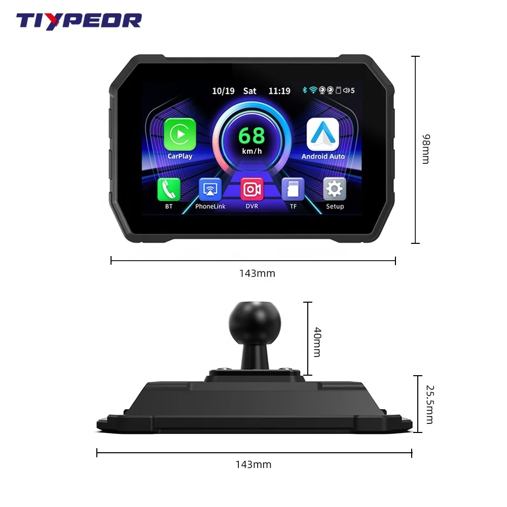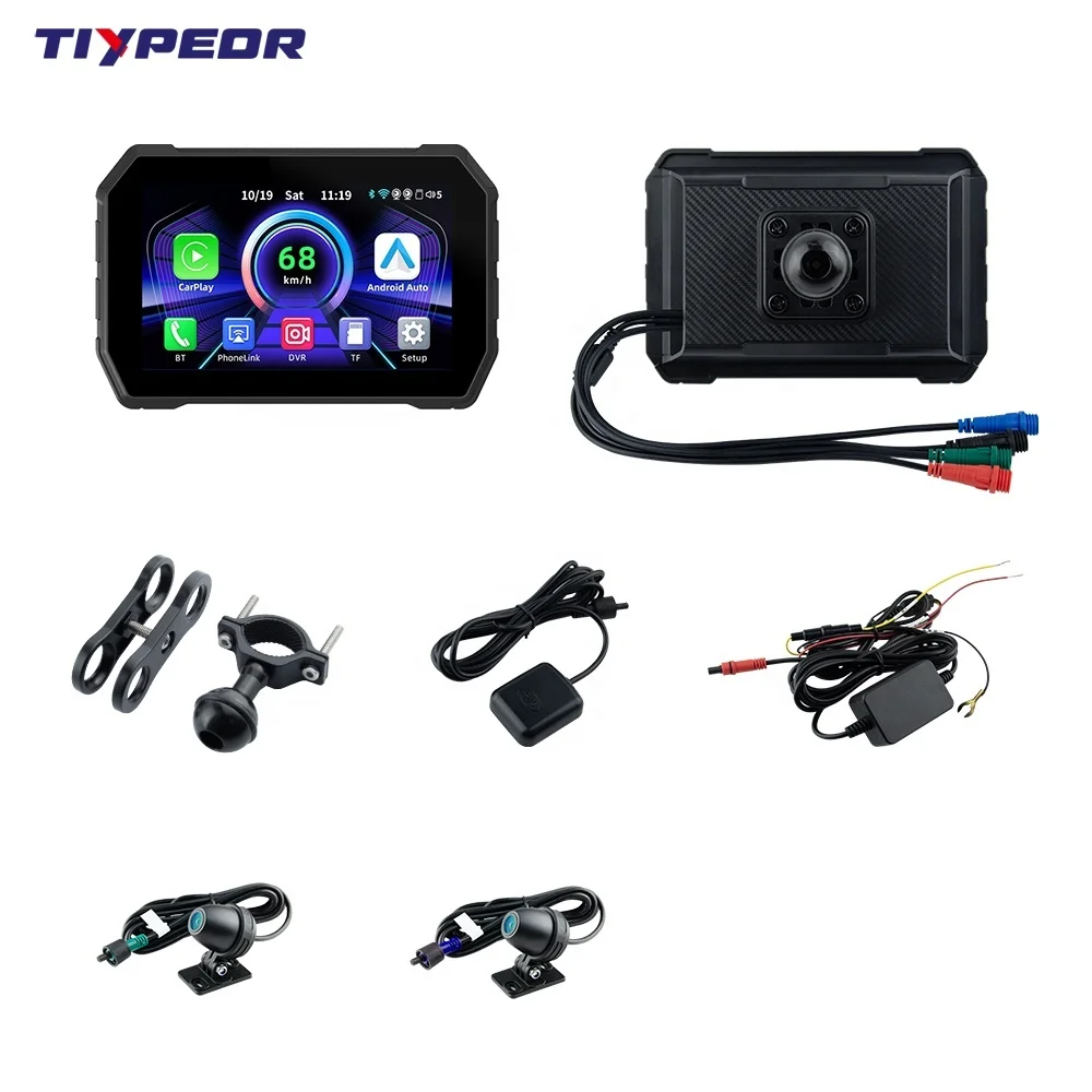 TIYPEOR 5Inch Moto GPS Waterproof Wireless Android Auto Carplay Portable Motorcycle Display Screen Navigation With DVR
