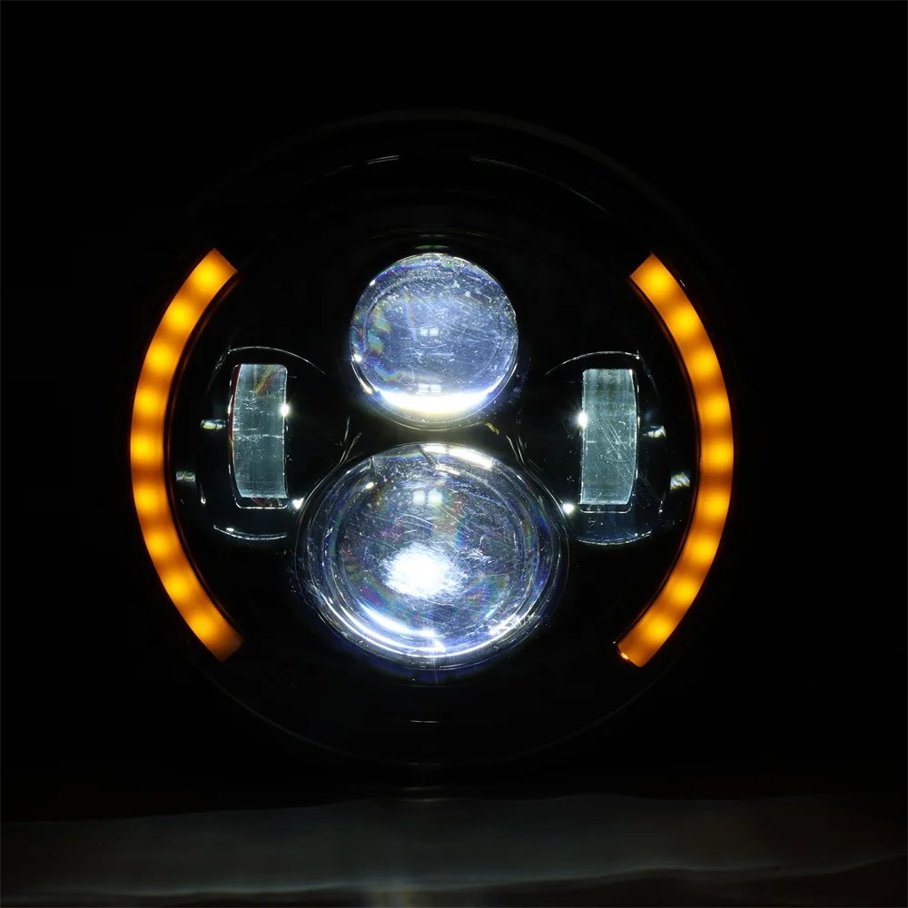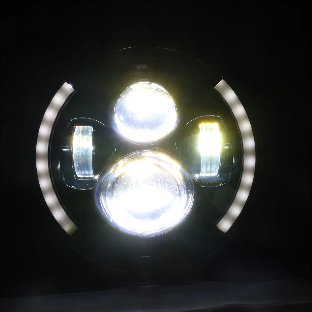 TIYPEOR 7Inch LED Headlight White Halo Angle Eyes Led H4 Headlamp Hi/Low Turn Signal for 4X4 Suzuki Harley Jeep Wrangler OffRoad
