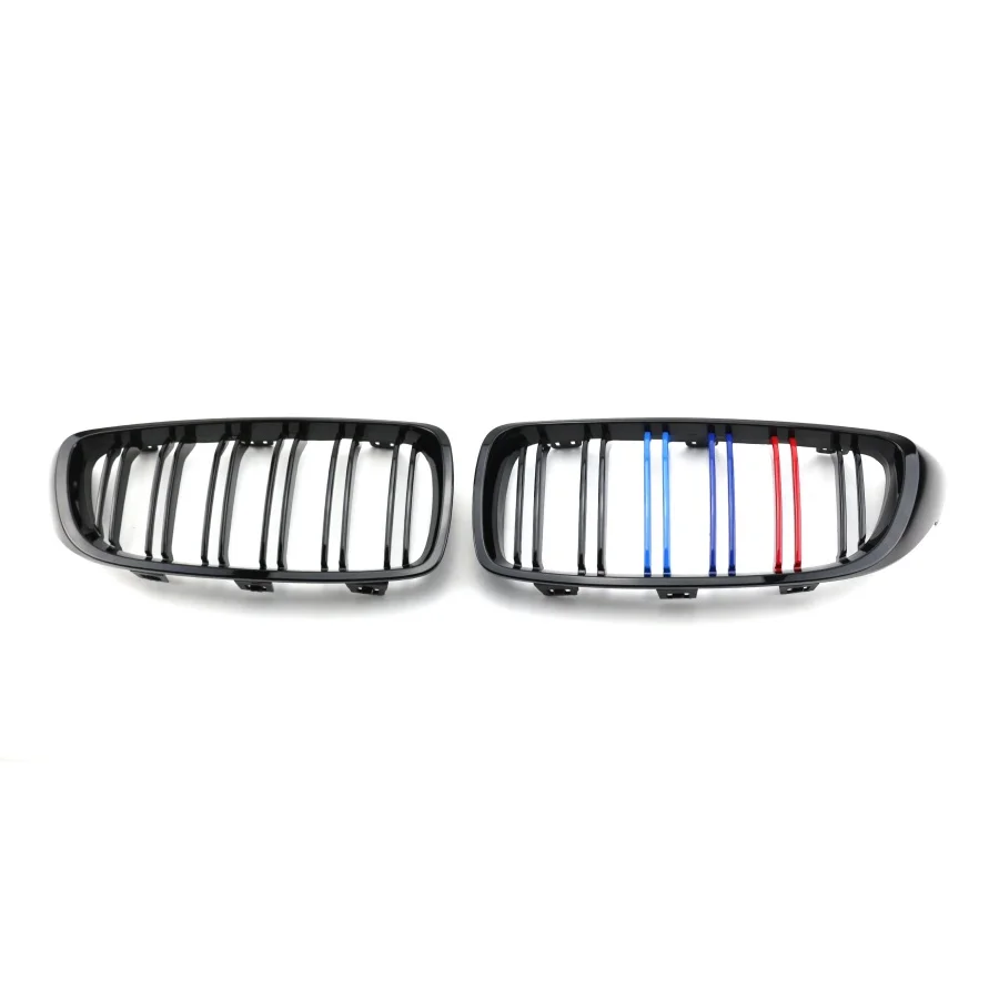 TIYPEOR Car Front Grille Car Grille for BMW 4 Series F32 2013-2021 Year Front Bumper Glossy Black Double Line ABS