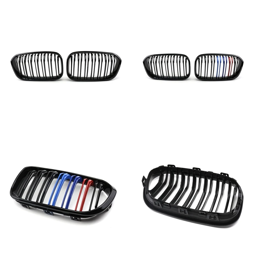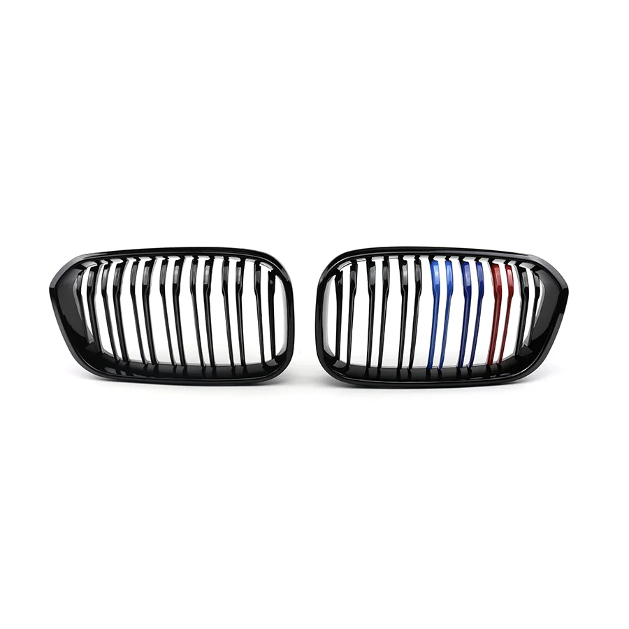 TIYPEOR Double Line Front Center Kidney Grill for BMW Series 1 F20 F21 2015 - 2018 Facelift Grille Black Carbon Electroplated