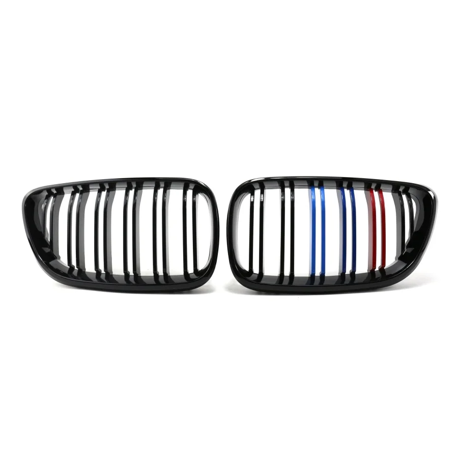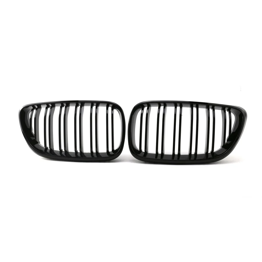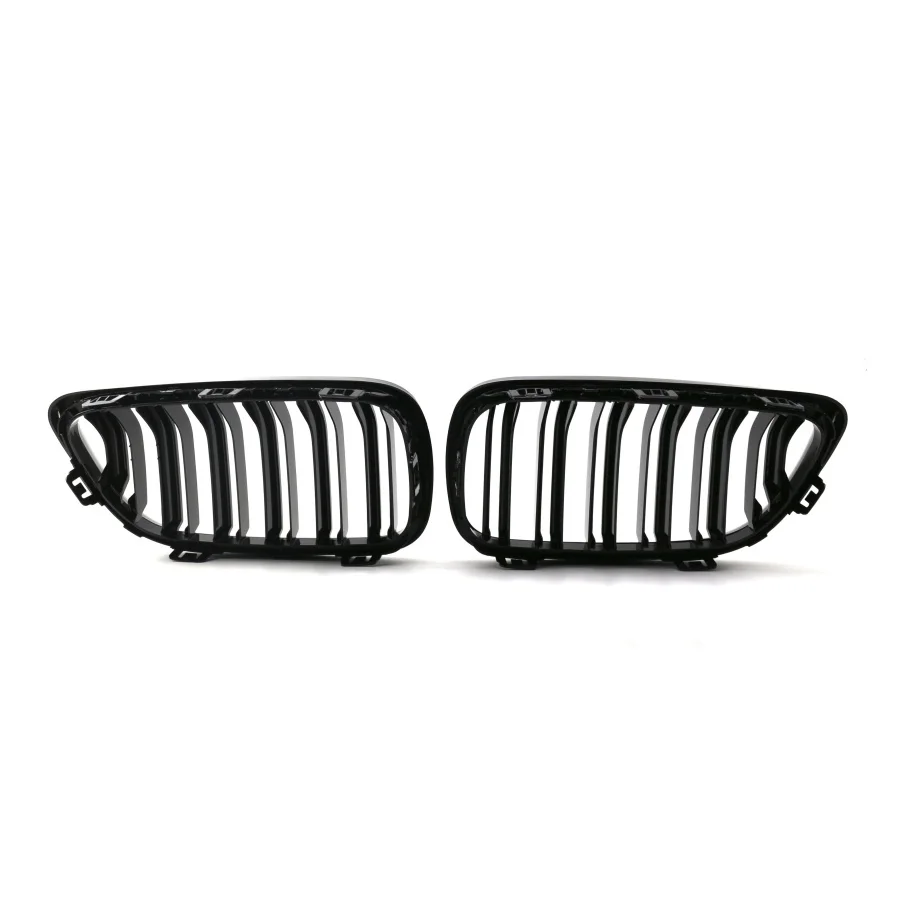 TIYPEOR Double Slat Front Grille Car Accessories Kidney Mesh Bumper Grill for Bmw 2 Series F22 2014 - 2018 Glossy Matte Black