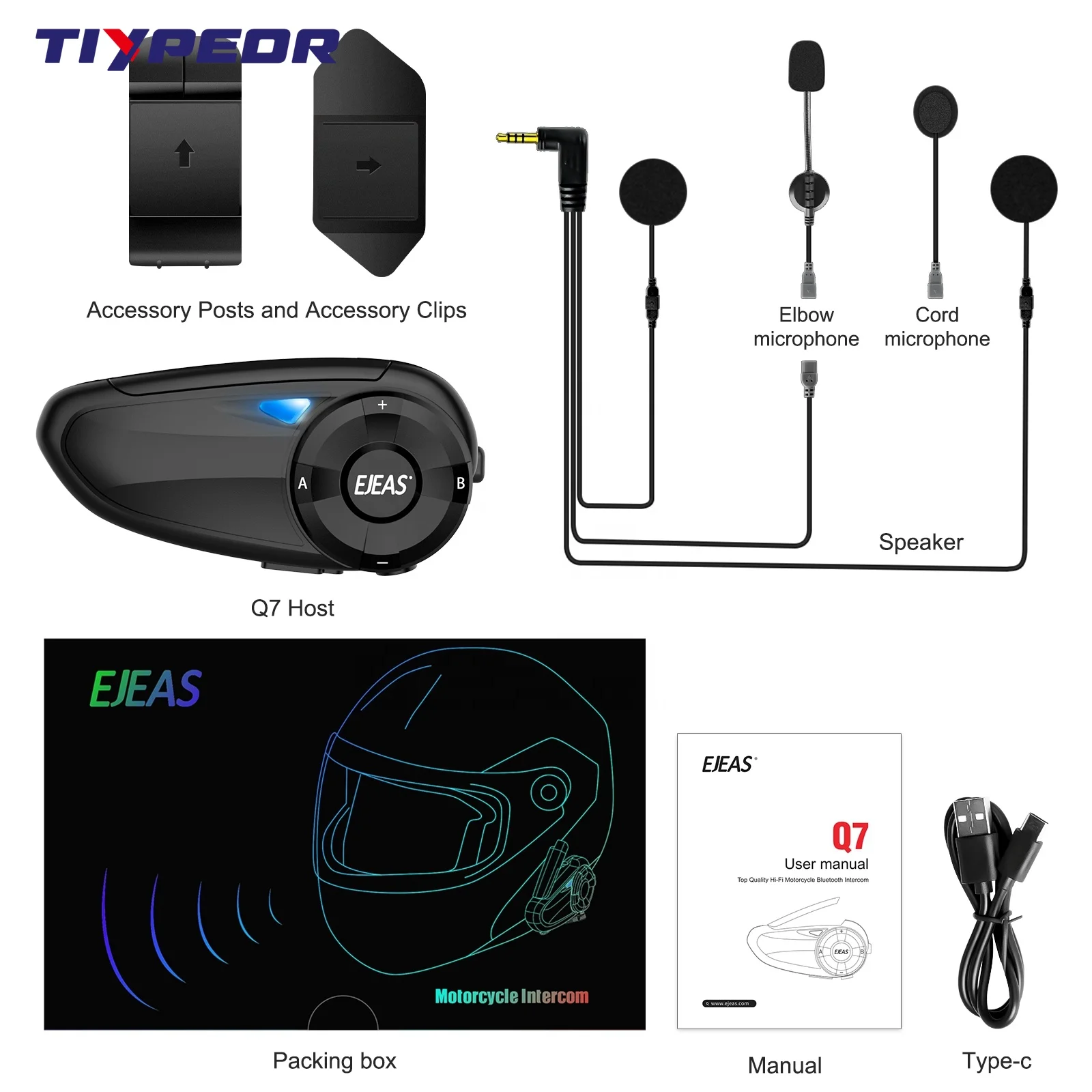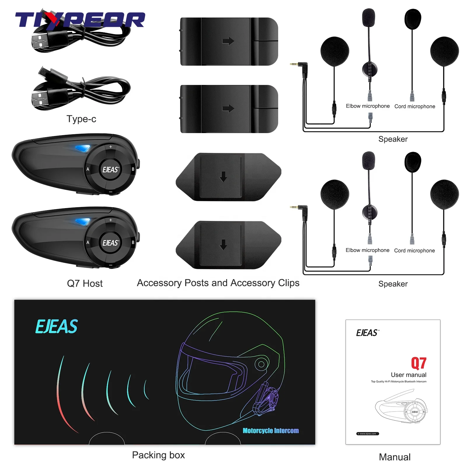 TIYPEOR EJEAS Q7 Full Duplex FM Radio Helmets Motorcycle Intercom Waterproof Bluetooth Intercomunicador