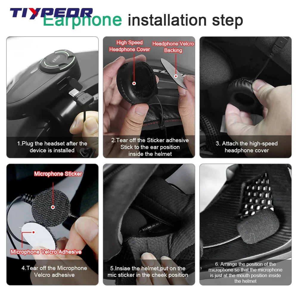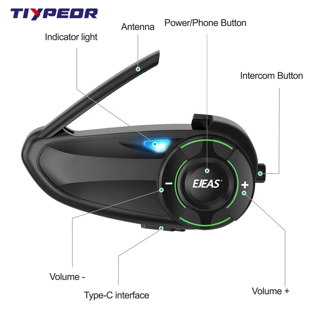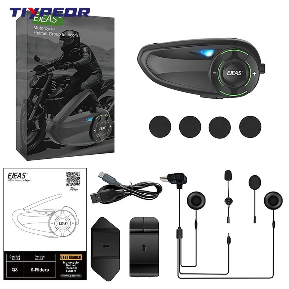 TIYPEOR EJEAS Q8 1000m Bluetooth Intercom System for Motorcycles Waterproof ABS Helmet Mesh Intercom for Riding