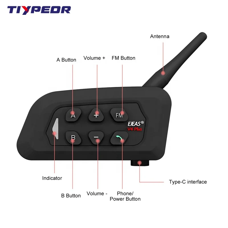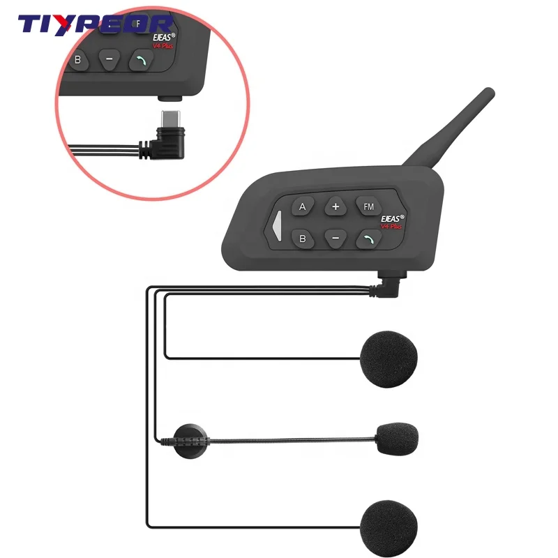 TIYPEOR EJEAS V4 Plus 4 Way 1500m Wireless Bluetooth Bluetooth Helmet Intercom Waterproof Motorcycle Intercom