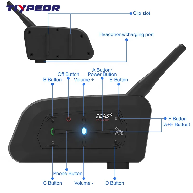 TIYPEOR EJEAS V7 2 Way bluetooth 5.1 Helmet Intercomsystemforsports Motorcycle Accessories Intercom Motorcycle
