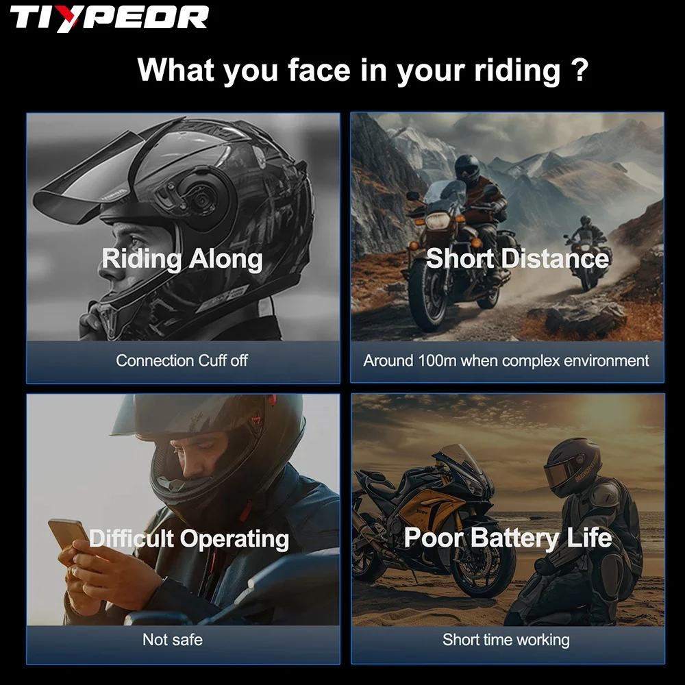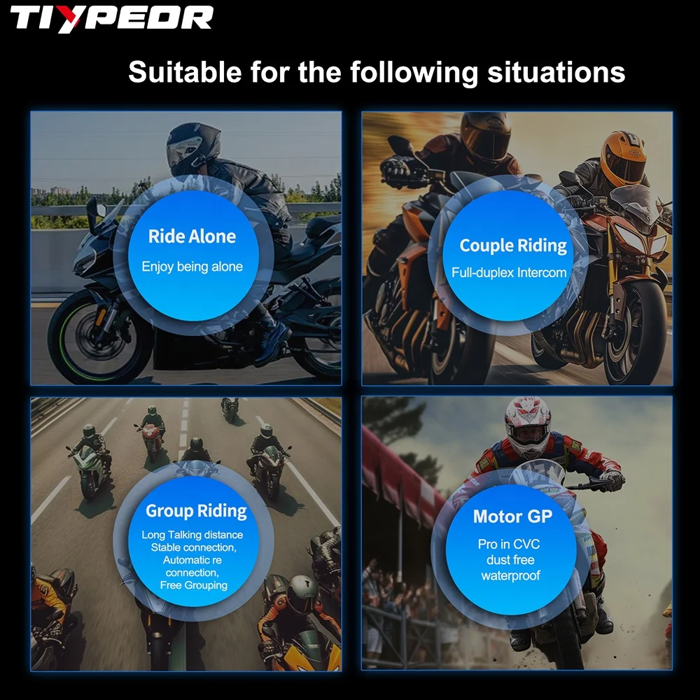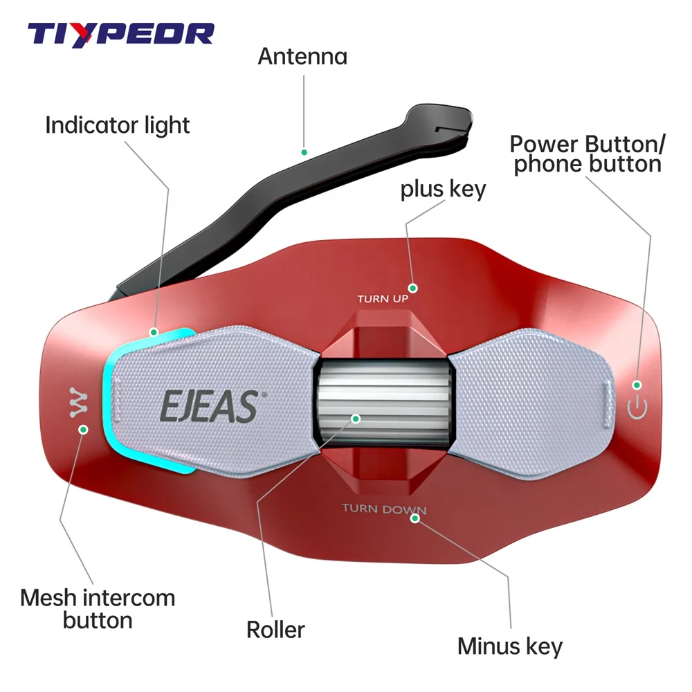 TIYPEOR EJEAS X10 Mesh Communication System Full Duplex Motorbike Helmets Headset 10 Riders Motorcycle Intercom