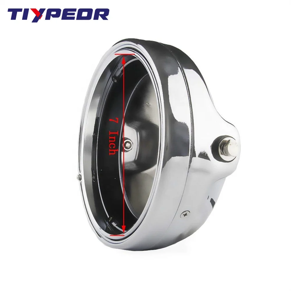 TIYPEOR for Motorcycle Black/Chrome 7'' Headlight Housing Black 7 Inch Housing Accessories