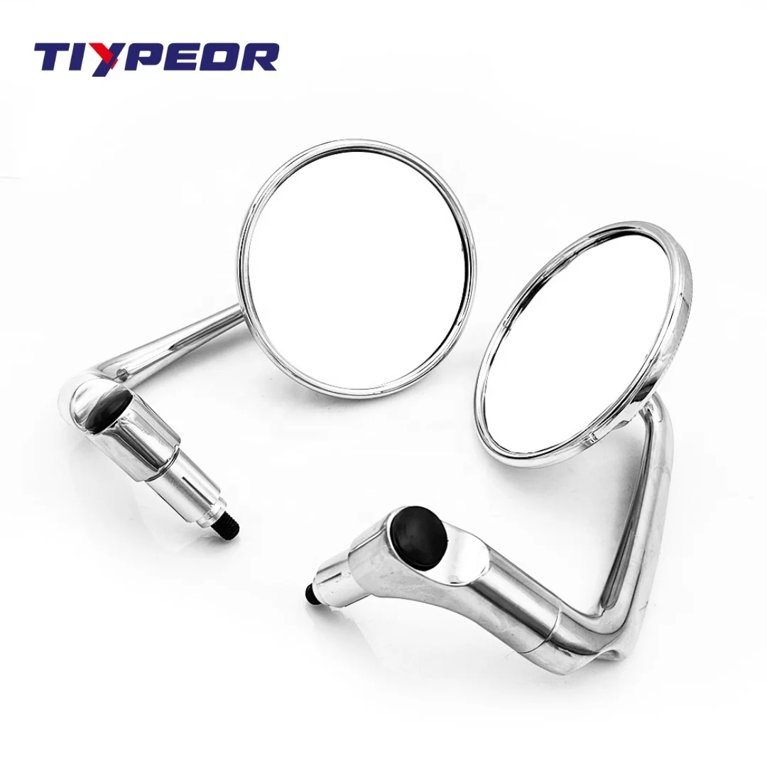 TIYPEOR High Quality Chrome Round Motorcycle Rearview Mirror With Convex Glass and Handle Bar Mirror