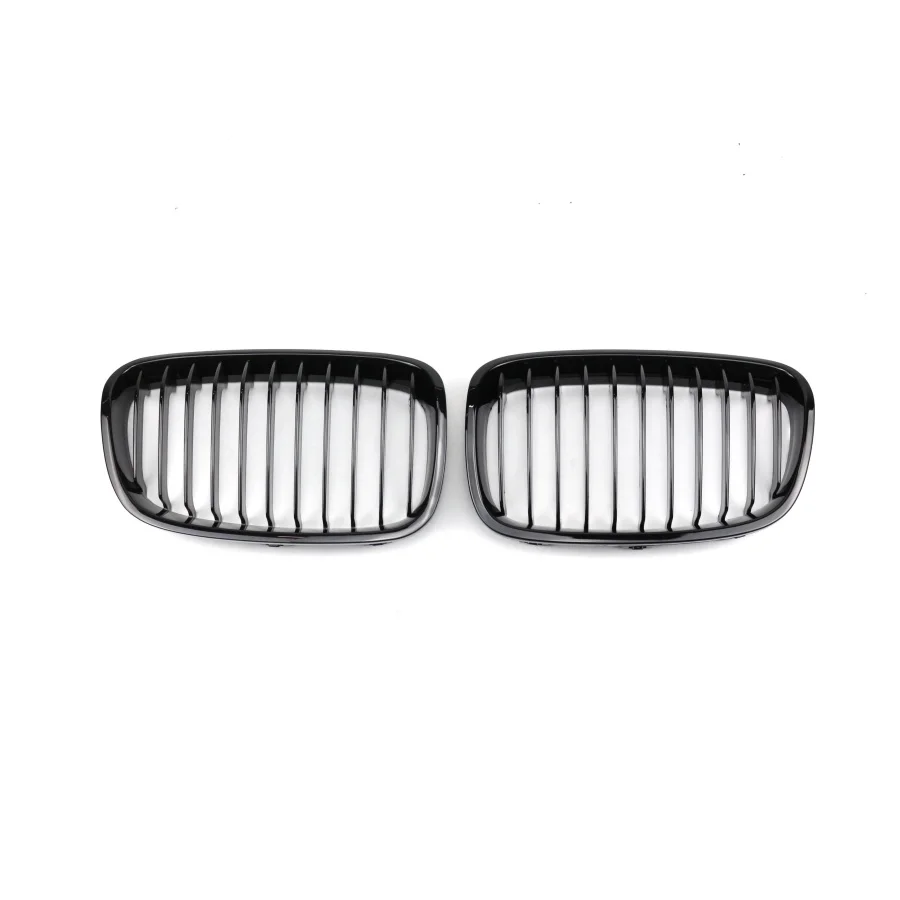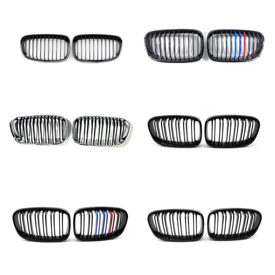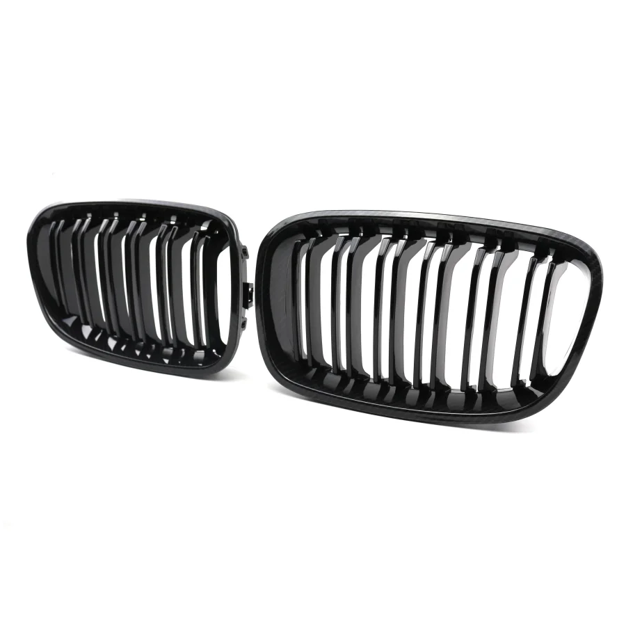 TIYPEOR Kidney Grills ABS Gloss Black Carbon Look Three - Color Plated Silver Front Grilles for BMW 1 Series F20 2012 - 2014