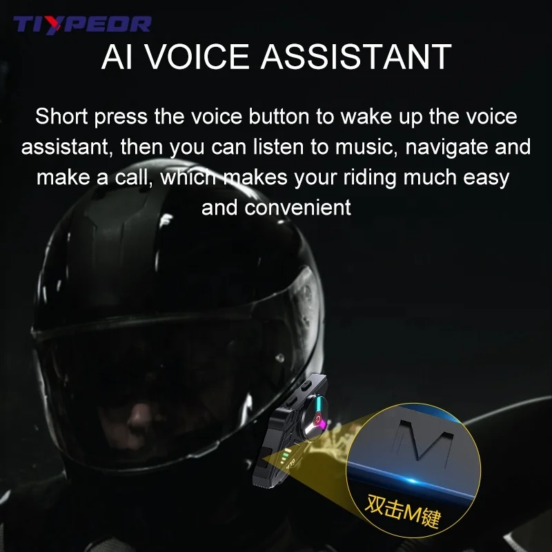 TIYPEOR Long Standby RGB Light Effect Waterproof Wide Call Range Motorcycle Helmet Earphone With Half Face Motorcycle Helmet