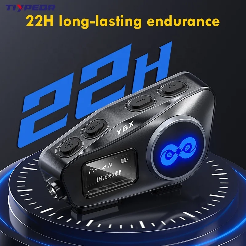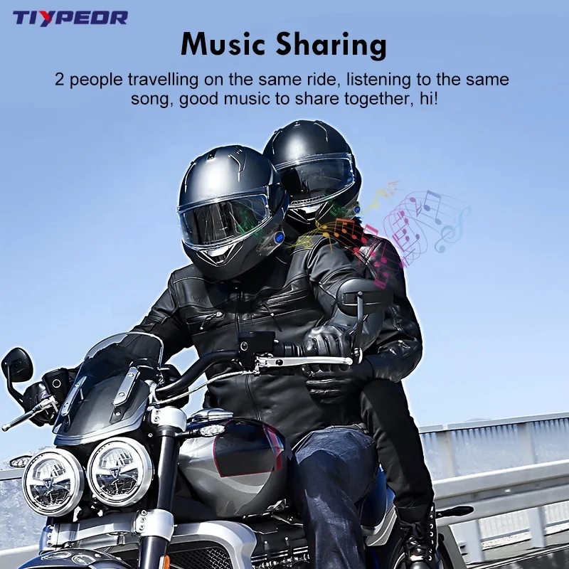 TIYPEOR Motorcycle Bluetooth 5.1 Helmet Earphone IPX6 Waterproof FM Radio Flashlight 4 Riders Intercom 1000m Music Sharing
