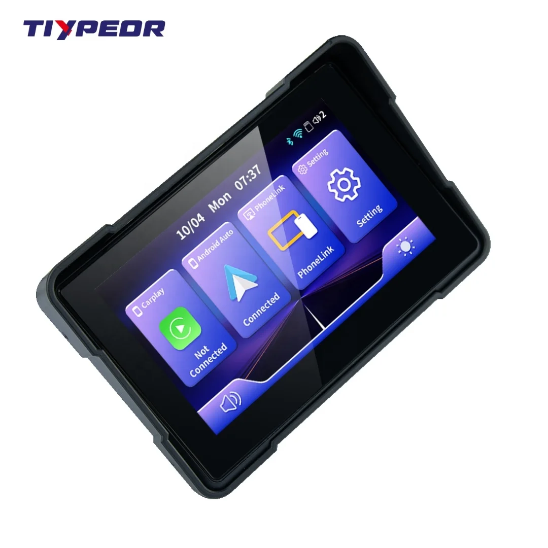 TIYPEOR Motorcycle CarPlay 5Inch Portable Motorcycle Screen Motorcycle GPS Navigation Display Wireless CarPlay Moto Android Auto