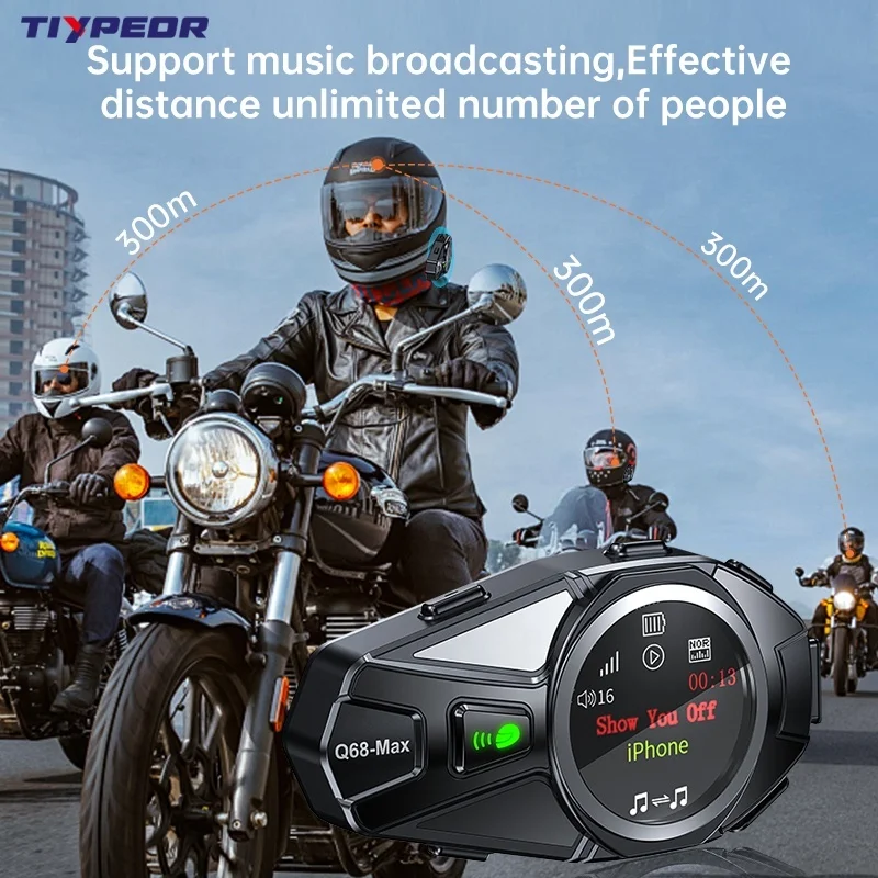 product tiypeor motorcycle helmet bt headset 2 riders 500m intercom tft color display ipx6 waterproof noise reduction auto answer-1