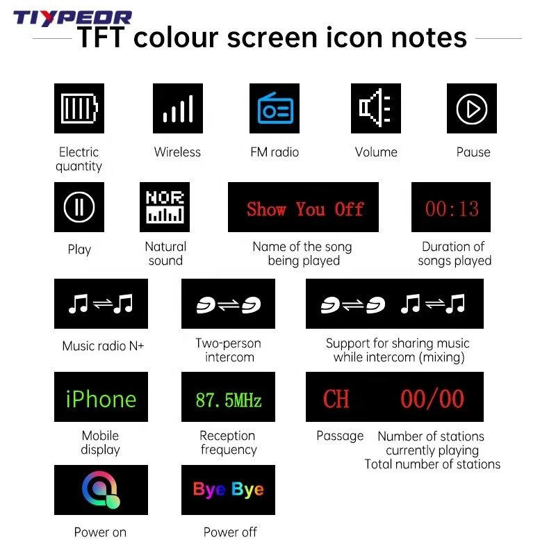 product tiypeor motorcycle helmet bt headset 2 riders 500m intercom tft color display ipx6 waterproof noise reduction auto answer-11