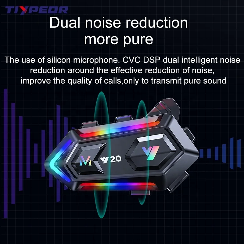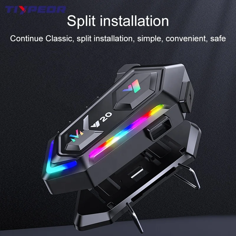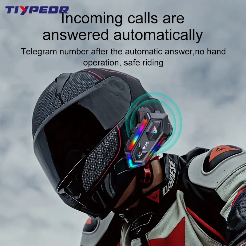TIYPEOR Motorcycle Helmet BT Headset Rider RGB Colorful Lights Waterproof 1000mAh Music Player Communicator Speakers