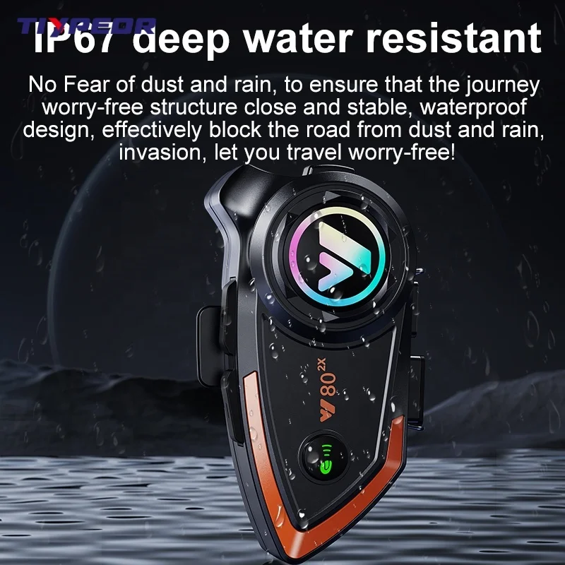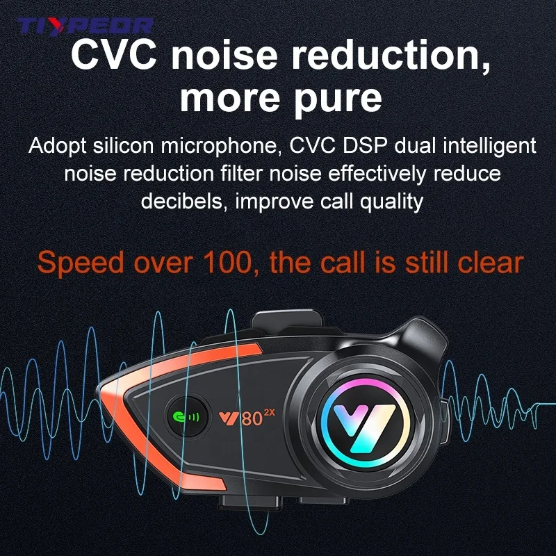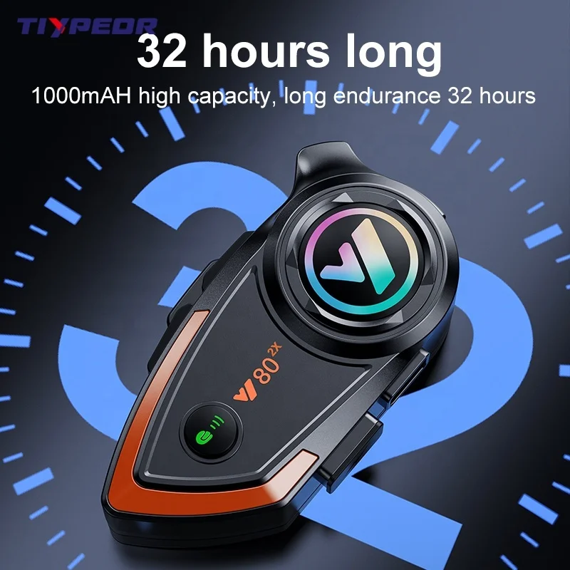 TIYPEOR Motorcycle Helmet Intercom BT Headset V5.0 Hands Free Call Wireless Noise Reduction Waterproof 1000M Interphone
