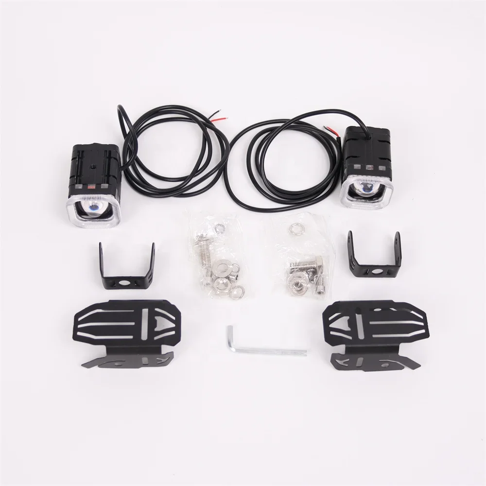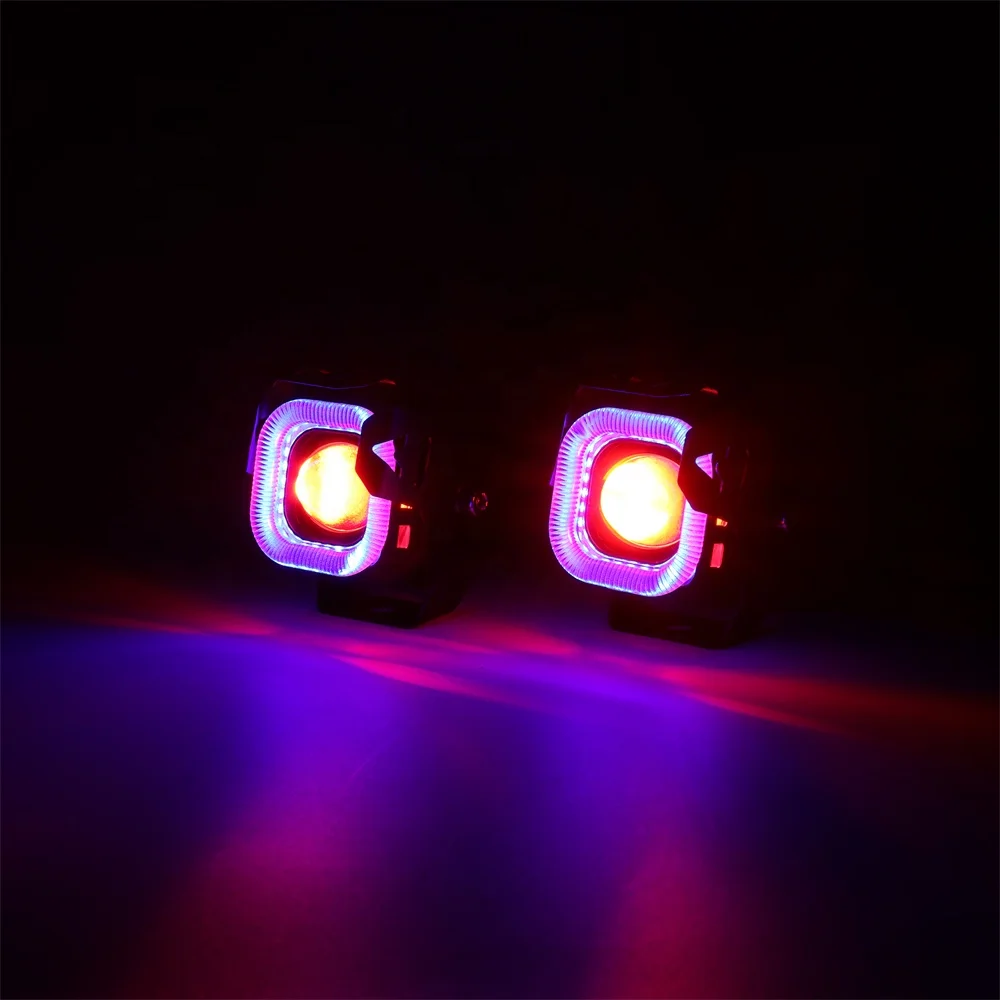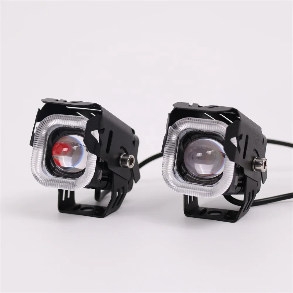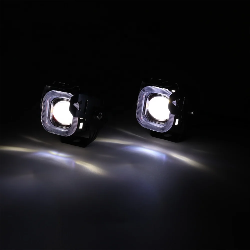 TIYPEOR Motorcycle LED Spotlight Dual Color Hi/Low Beam Fog Lamp 12V Mini Lens Headlight Driving Light for Motocross Dirt Bike