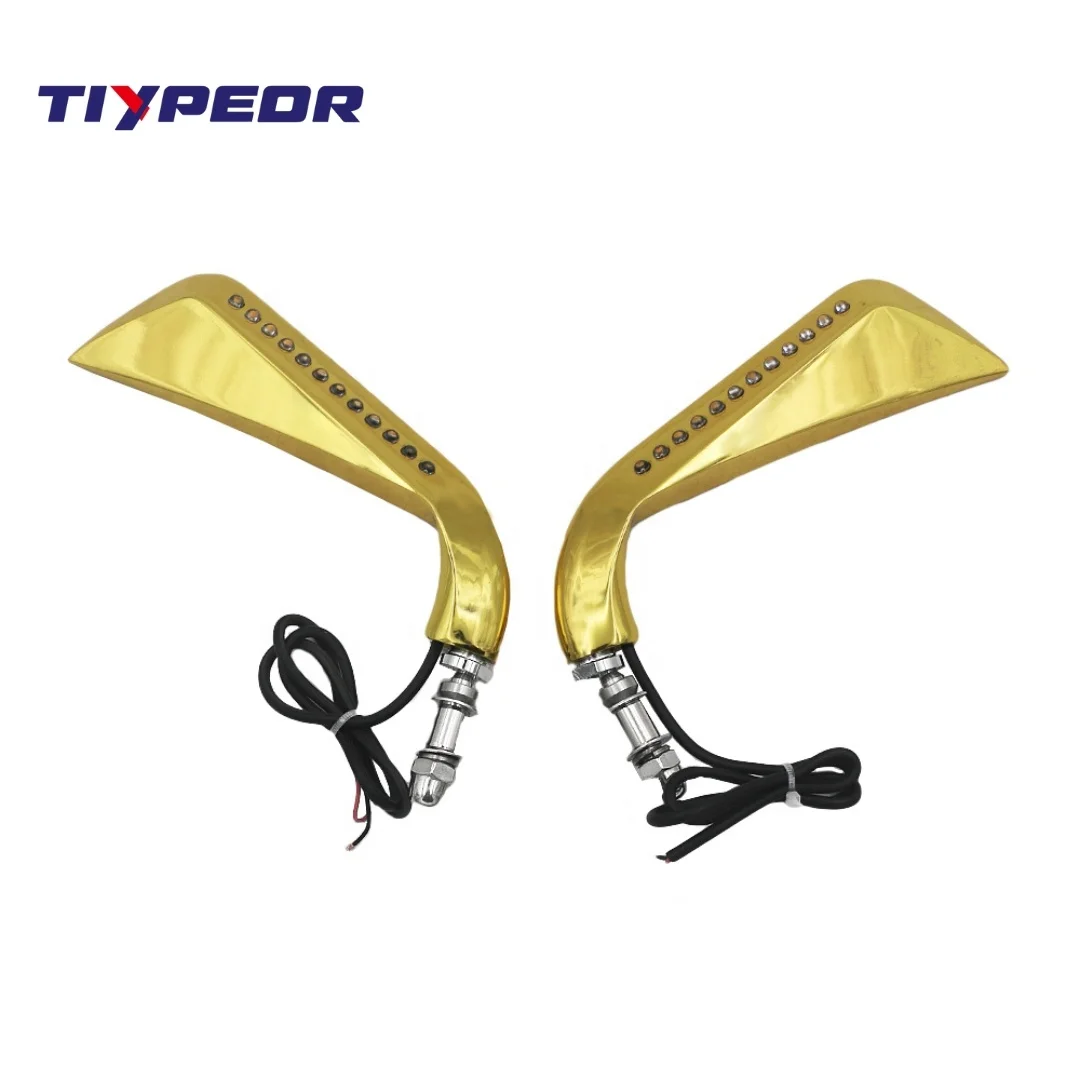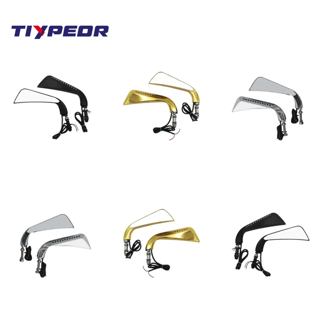 TIYPEOR Motorcycle Sickle Rearview Side Mirror with LED Turn Signal Light 8MM CNC Aluminum Universal Motorcycle Parts