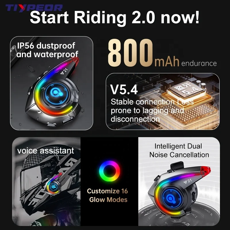 TIYPEOR Noise Cancelling Bicycle Headphone for Motorcycle Helmet Communication Systems bluetooth Helmet Headset