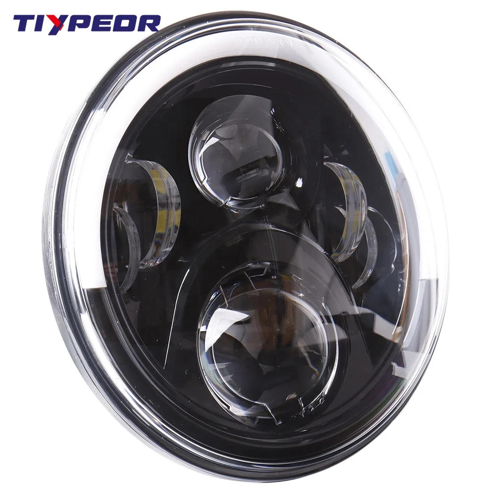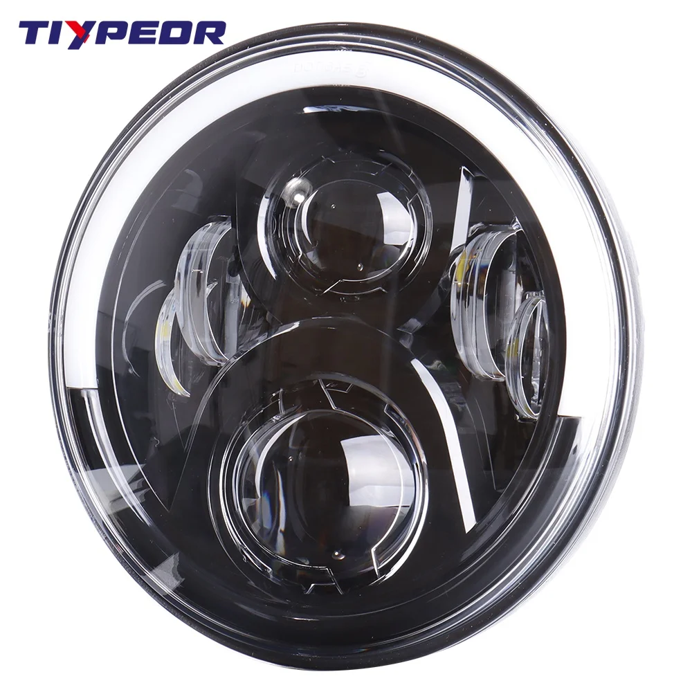 TIYPEOR Round 7inch Led Headlight HI/LO Beam Light Halo Angle Eye DRL Headlamp for Wrangler Lada Niva Off Road 4x4 Motorcycle