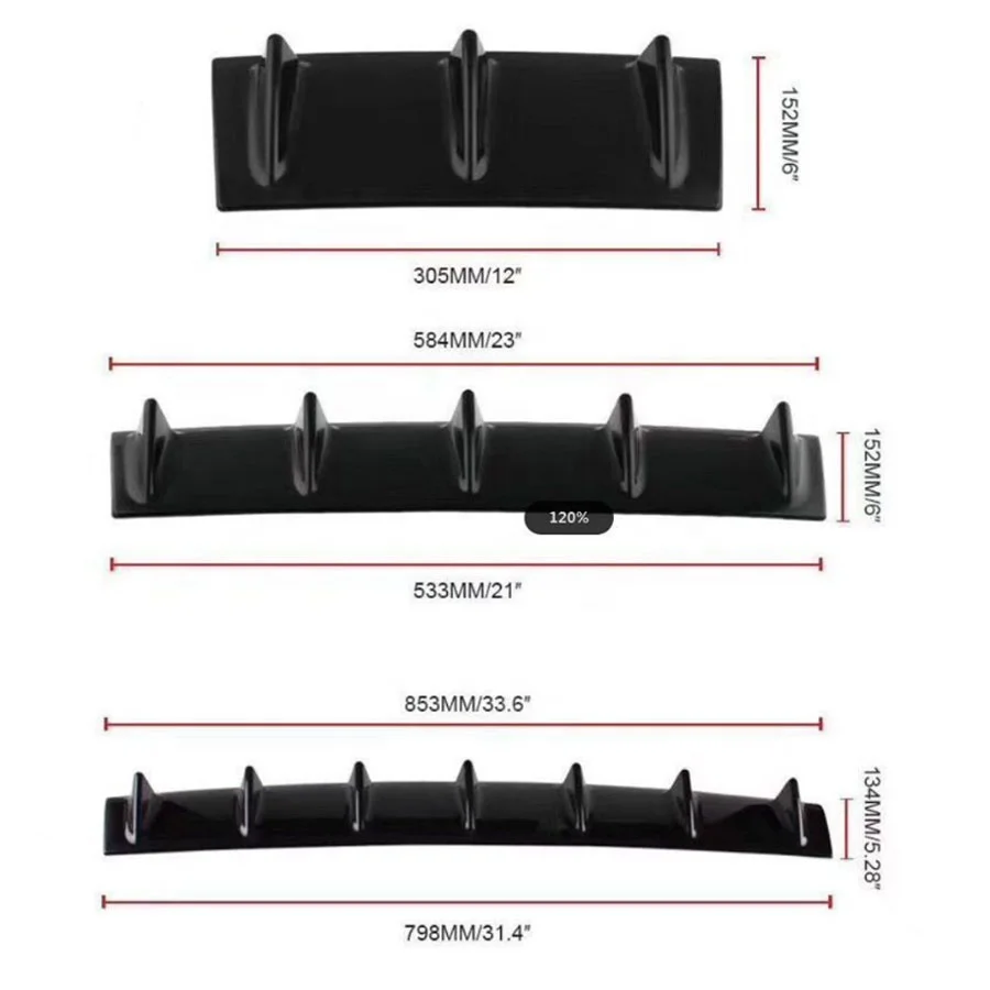 Tiypeor Shark Fin Diffuser 7 Fin Universal Carbon Black Rear Bumper Lip Diffuser Shark Fin Back Splitter Spoiler ABS Plastic