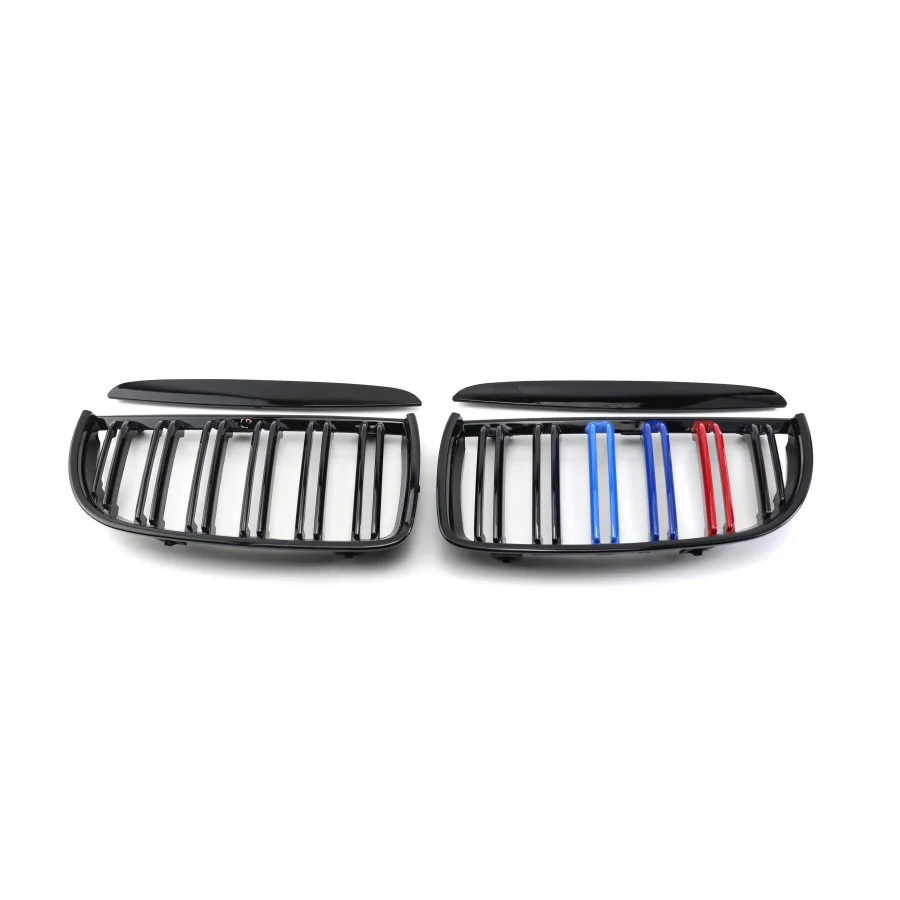TIYPEOR Two Slat Front Hood Kidney Grill Car Grille for BMW E90 E91 3 Series 2005 2006 2007 2008 Carbon Matte Black