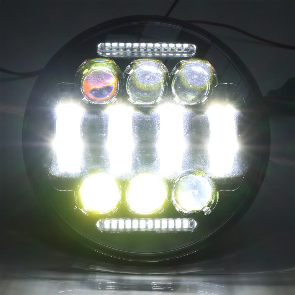 TIYPEOR Universal Headlight 5.75Inch DRL for Iron 1200 883 Street Softail Dyna Projector Round LED Motorcycle Headlamp