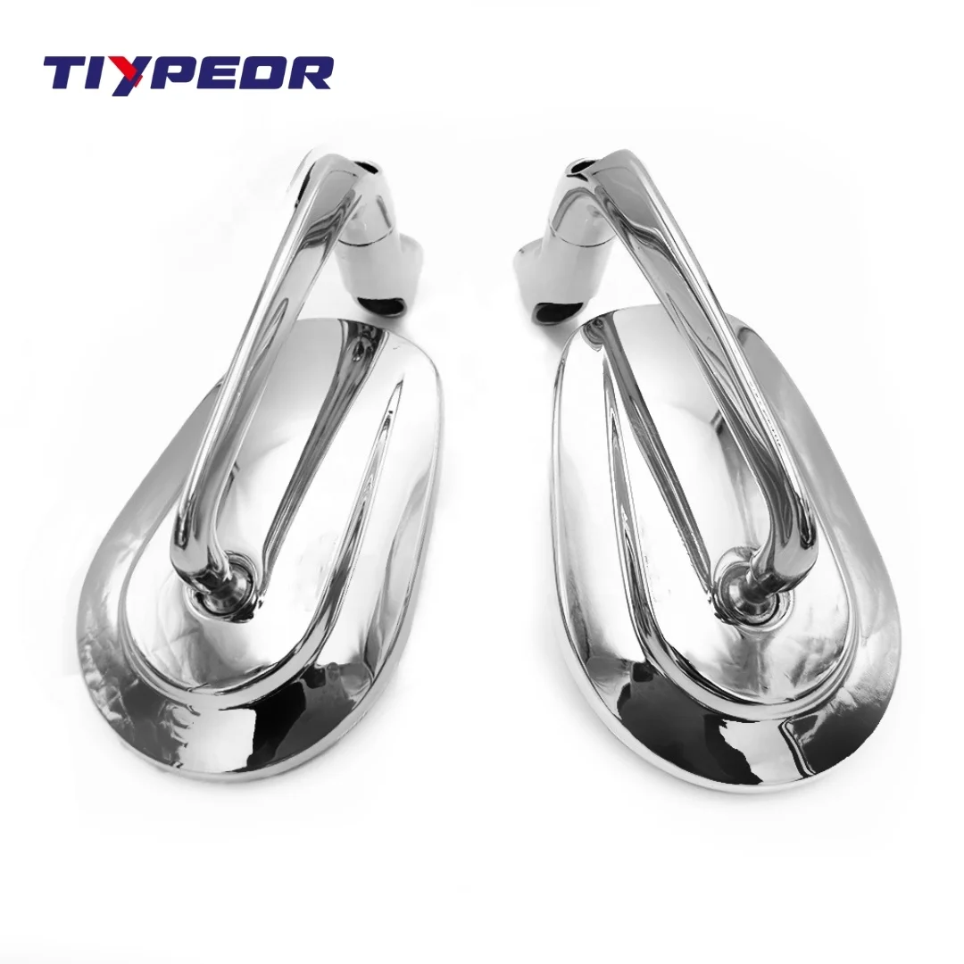 TIYPEOR Universal Motorcycle Chrome Aluminum Side Mirror for Motorcycles New Design Multi Angle Adjustable Large Area View