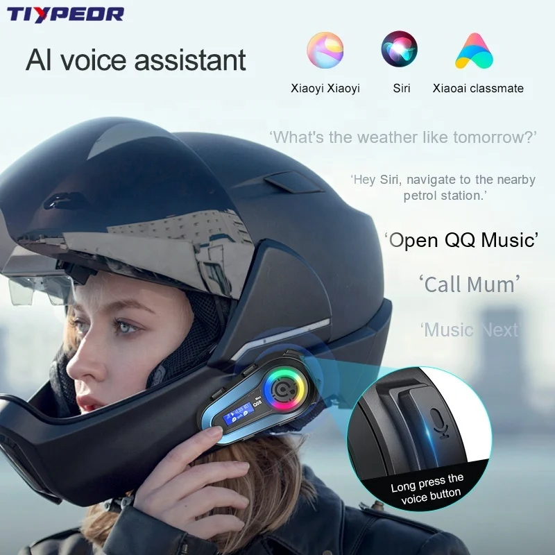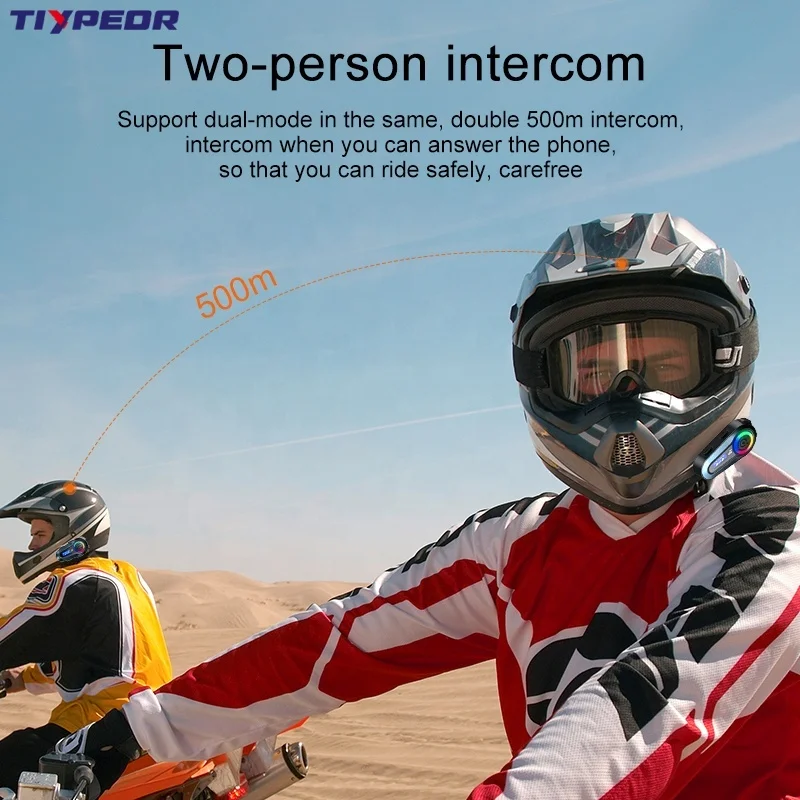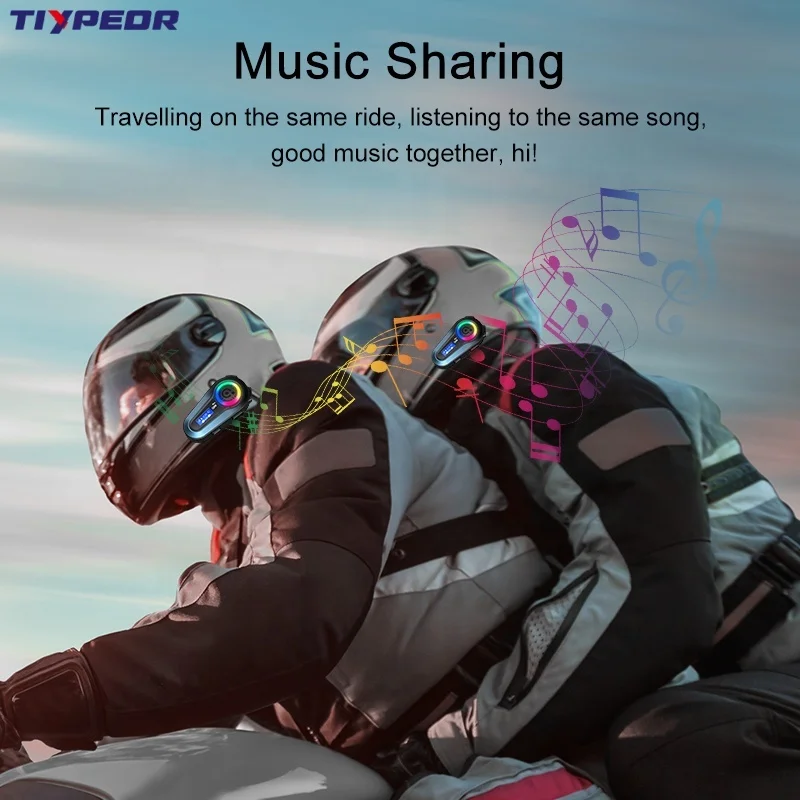 TIYPEOR Waterproof Intercom Motorcycle LCD Display Music Sharing Two People Intercom bluetooth Interphone Headset for Motorcycle
