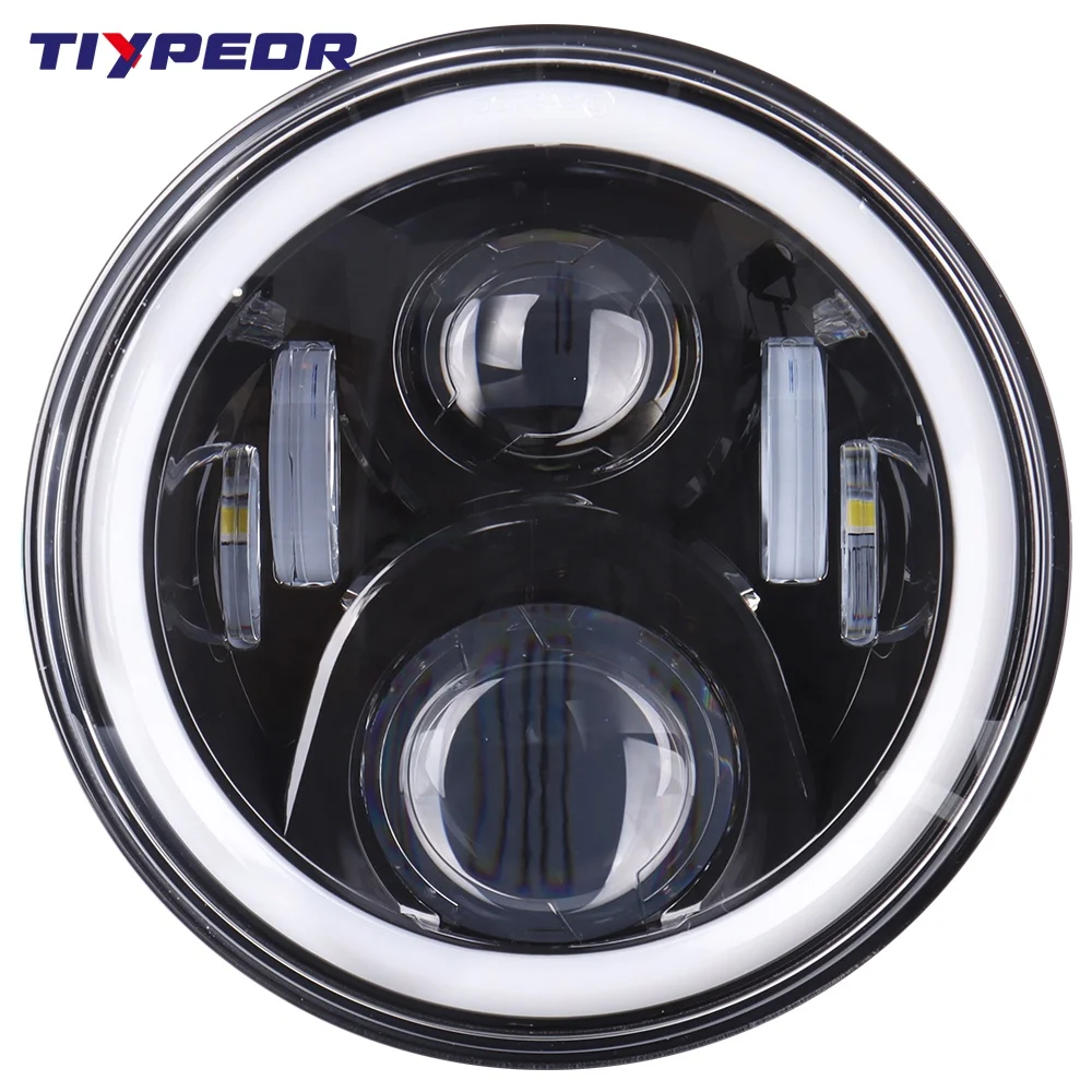 TIYPEOR Wholesale 12V 24V Auto Accessories with Halo Angel Eyes DRL Headlamp for Jeep 7 Inch Round LED Headlight Motorcycle