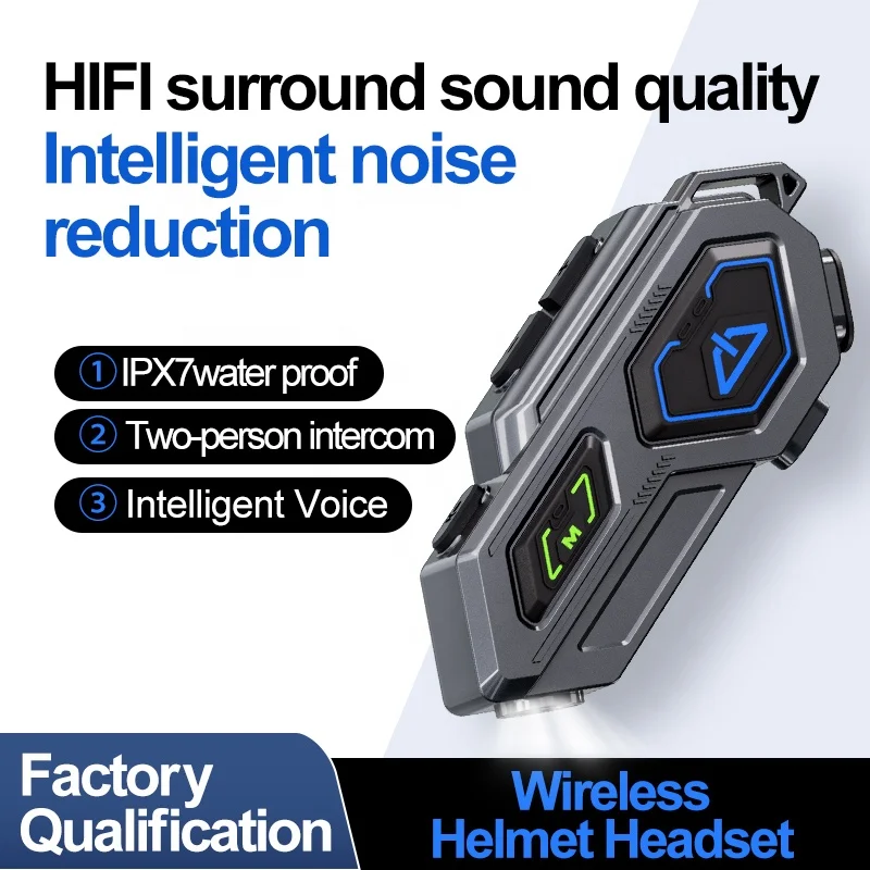 TIYPEOR Wireless Earbuds Waterproof Noise Cancelling Handsfree Rider Motor Headset LED Motorcycle Intercom Helmet Headphone