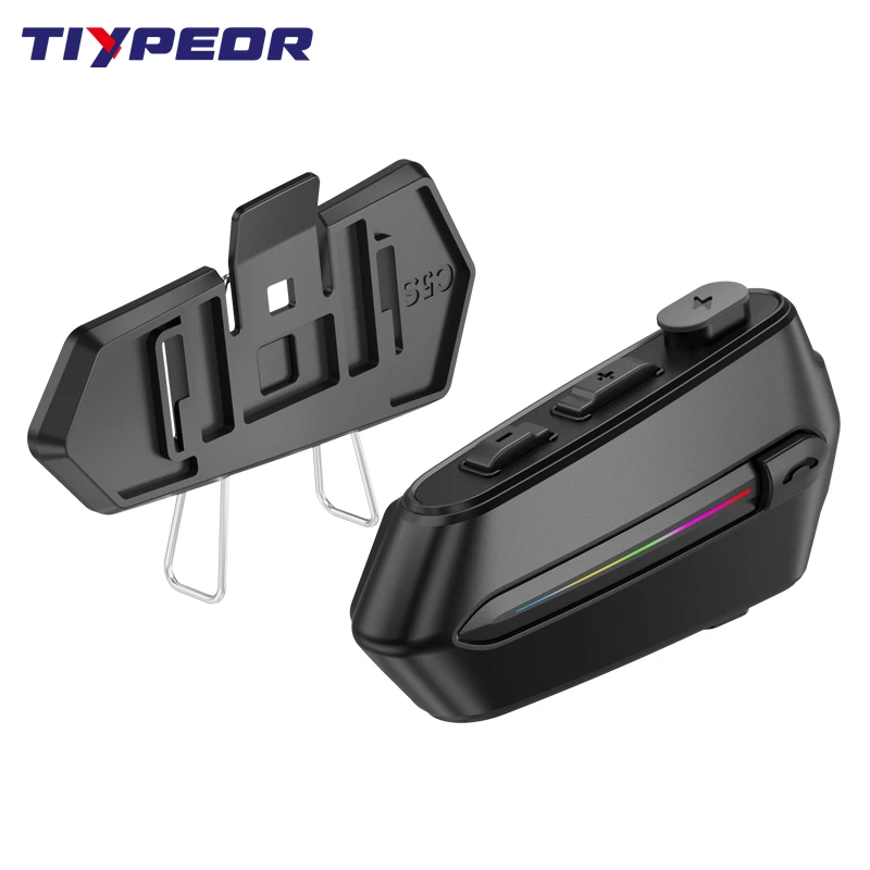 TIYPEOR Wireless Earbuds with Mic RGB Light Handsfree Headset Voice Assistant Intercom Waterproof Motorcycle Helmet Headphones